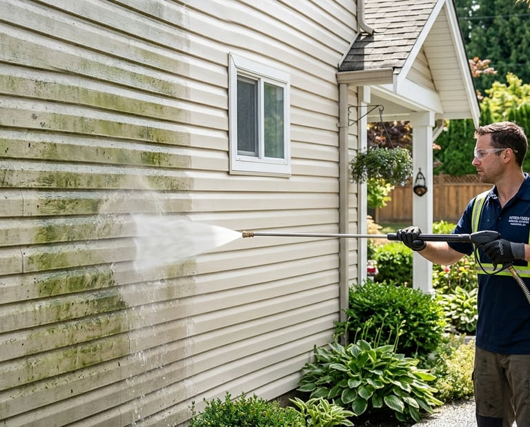 We use low-pressure soft washing to safely remove moss, algae, mildew, and buildup from your home's exterior — no damage, just results.