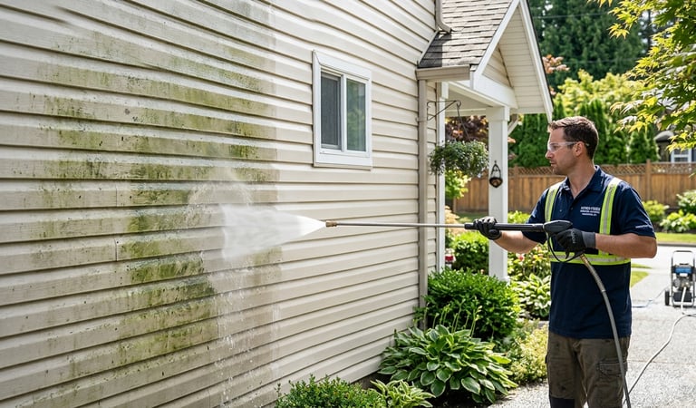 Many homeowners assume pressure washing is the go-to solution for everything. But when it comes to house exteriors, high-pressure water can cause serious damage — forcing water behind siding panels, stripping paint, eroding wood fibres, and even voiding manufacturer warranties.